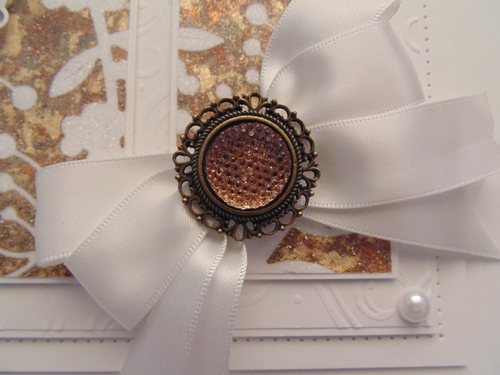 I tied a bow using 2 lengths of Off White Satin Ribbon and added a Dazzler Setting and a Light Brown Dazzler.