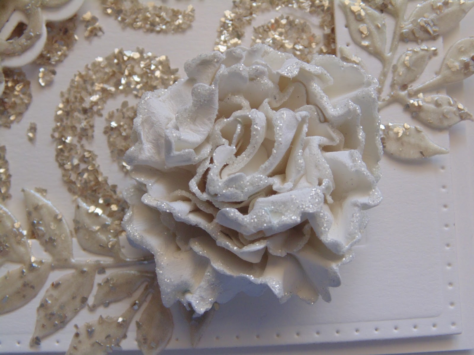 I assembled the card as shown adding some CS Polar White Twinkles around the edges of the image and the sentiment and adding some to the edges of the petals of the flower.